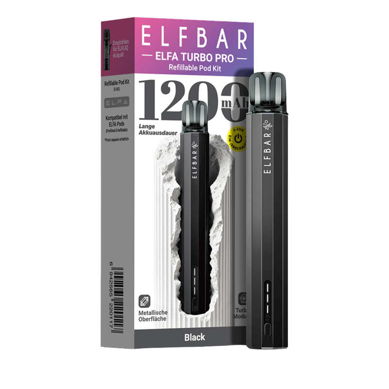 Ob als Elf Bar ELFA Turbo Pro Starterset für Einsteiger oder als flexibles Vape Kit für Erfahrene - die Kombination aus hoher Akkukapazität, moderner USB-C Ladetechnik und breiter Pod-Kompatibilität macht dieses System zur idealen Wahl für anspruchsvolle Dampfer.