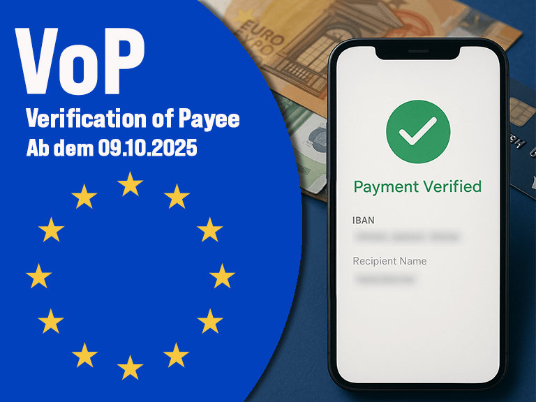 Ab dem 9. Oktober 2025 tritt die EU-Regel „Verification of Payee“ (Instant Payments Regulation EU 2024/886) zur Betrugsbekämpfung in Kraft. Bisher war die IBAN für eine Zahlung ausreichend, künftig müssen jedoch Name des Zahlungsempfängers und IBAN mit den Kontoinhaber-Daten übereinstimmen. Zahlungen mit abweichenden Angaben können möglicherweise nicht erfolgreich ausgeführt werden.